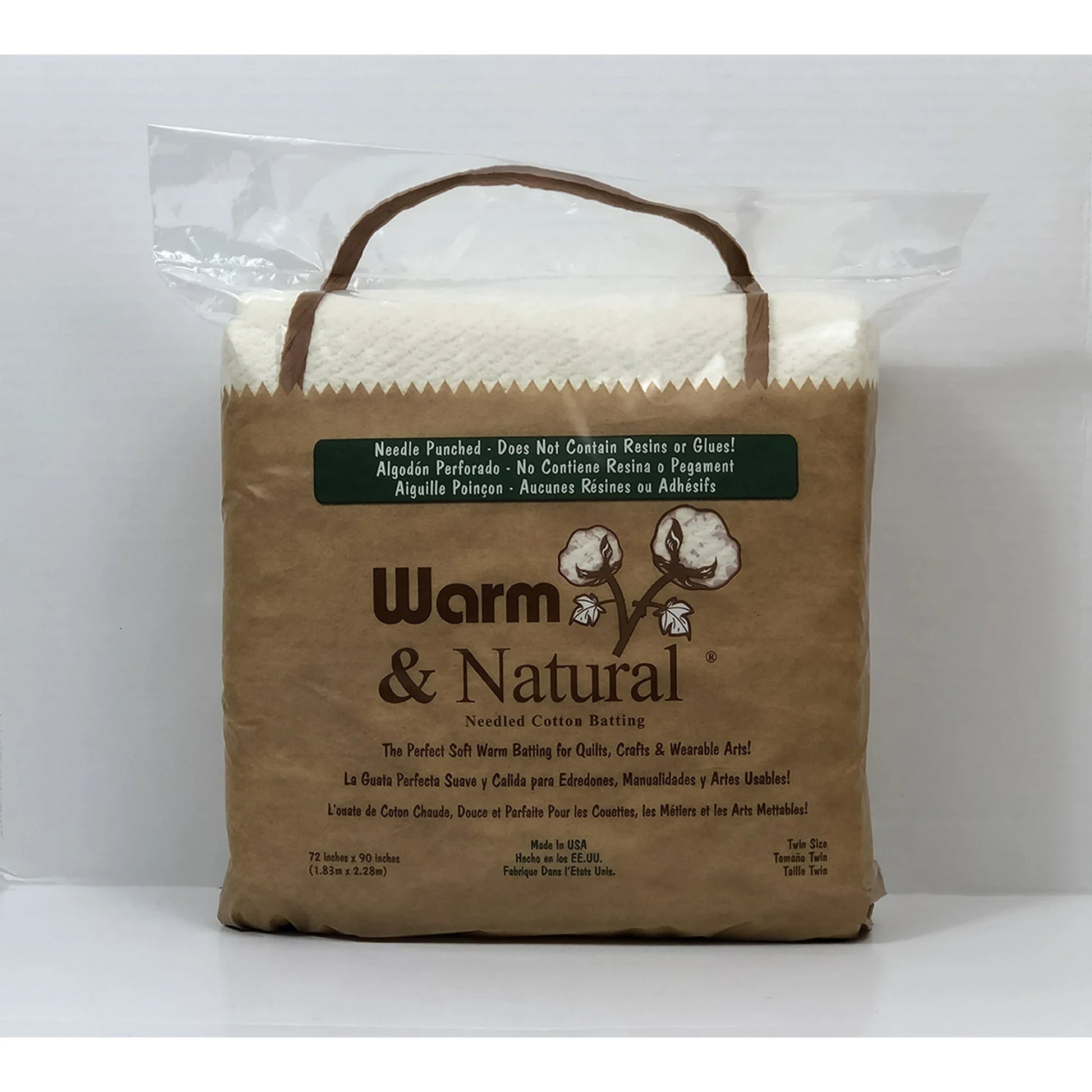 Warm and Natural Cotton Batting, Twin Size, 72" x 90"